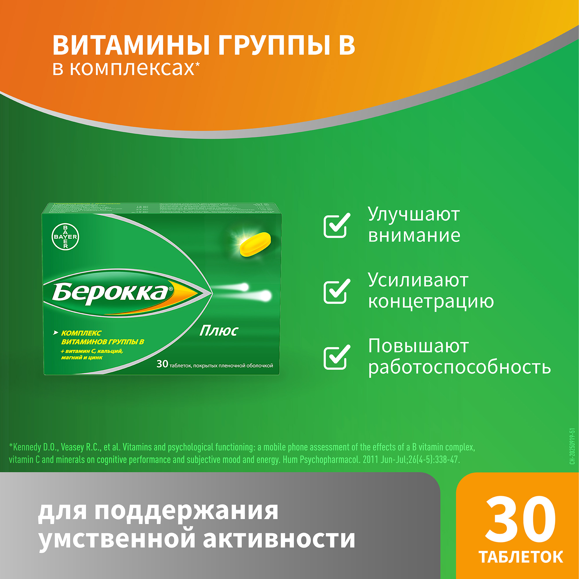 Содержание витаминов в препарате Берокка® Плюс подобрано для применения в терапевтических целях при состояниях, сопровождающихся дефицитом или увеличением потребности в витаминах (повышенные физические нагрузки, период длительного нервного перенапряжения и стрессов; неполноценное и несбалансированное питание (ограничивающие диеты); у пожилых людей (таблетки шипучие); хронический алкоголизм; никотиновая зависимость (у курильщиков) (таблетки шипучие), а также применение пероральных контрацептивов у женщин) (таблетки шипучие).